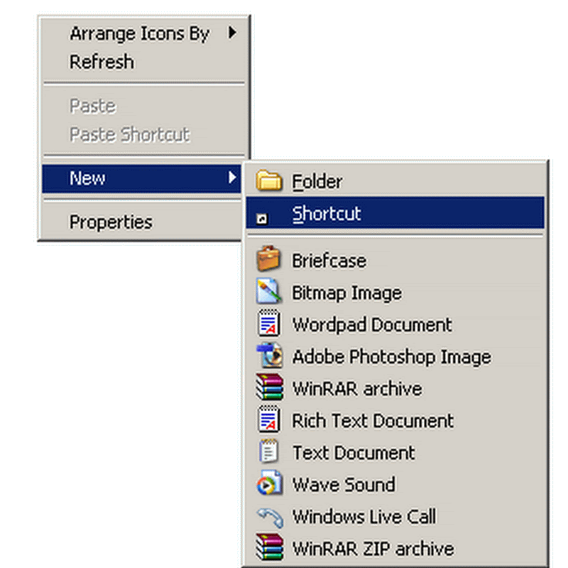 - Right click anywhere on your Desktop and select New > Shortcut.